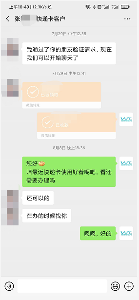 西安未央区楼盘销售经理:张总,快递电销卡反馈很好,正常使用,稳定